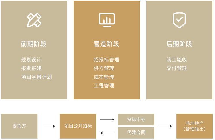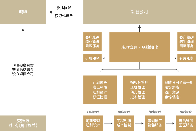 代建代管是基于鴻坤品牌價(jià)值、產(chǎn)品開發(fā)建設(shè)及管理運(yùn)營(yíng)等優(yōu)勢(shì),為客戶提供涵蓋土地獲取、產(chǎn)品設(shè)計(jì)、工程營(yíng)造、營(yíng)銷管理、物業(yè)管理等全流程的委托開發(fā)建設(shè)及運(yùn)營(yíng)管理解決方案